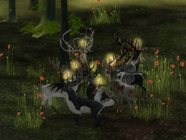 I like framing screenshots in environment a lot! If I imagine walking through the trees and seeing these fantastic deer i am in awe! Sometimes it feels like trees were put there for that exact reason haha. The screenshot is also really cute. <33